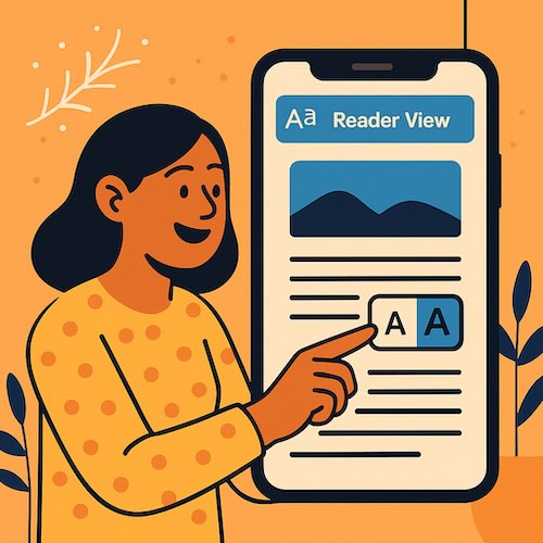 Rita, 67, loves local news but hated pinching and zooming. One afternoon we turned on Reader View on iPhone Safari for her two favorite newspapers, then bumped the page text to a comfortable size. Ten minutes later she said, “This feels like my large-print library books.” The next week she told me she was reading more, with less eye strain, and no longer lost her place when an ad popped in. Small change, big relief.